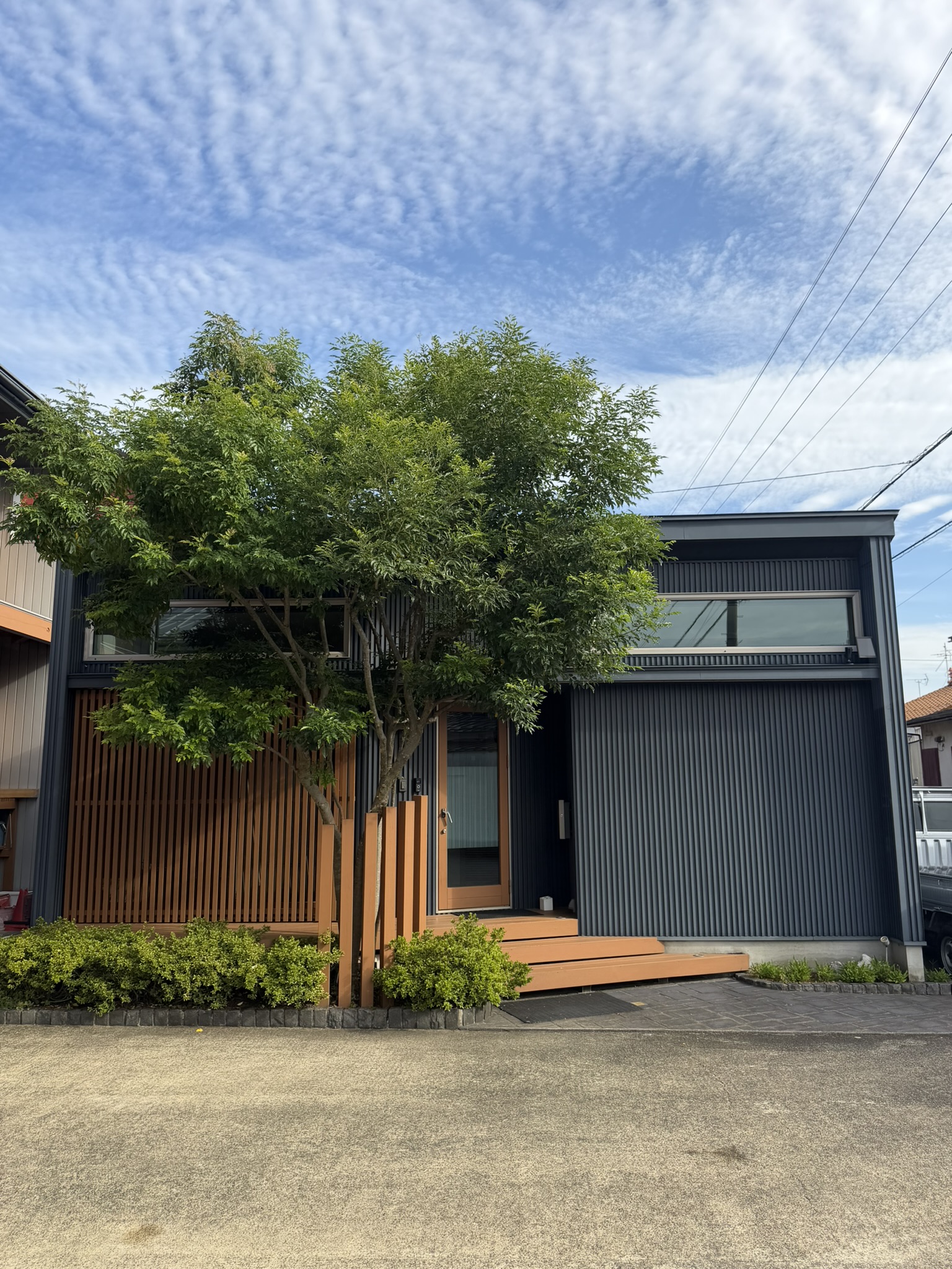 福井 注文住宅 ライフ・コアデザインオフィスの本日のブログです。 今日は、午後にお客様宅訪問、照明器具の交換と打合せ。そのほかは、経理の仕事と見積作業などでした。 事務所のシンボルツリーのシマトネリコですが、またこんなに大きくなりました。 去年の秋にも、バッサリと切ったつもりなのですが、毎年元気に成長します。 夏の間は、日除けにもなるので助かりましたが、ここにきて虫もついてきたので、息子に剪定してもらうことにしました。 剪定後は、こちらになりました。 離れて見てはここを切ろうとか、一応バランスをみて切りました。 シンボルツリーも、世話は必要ですが、やはり緑があることはよいものです。 福井で注文住宅や工務店のことなら(株)ライフ・コア デザインオフィスにお任せください。