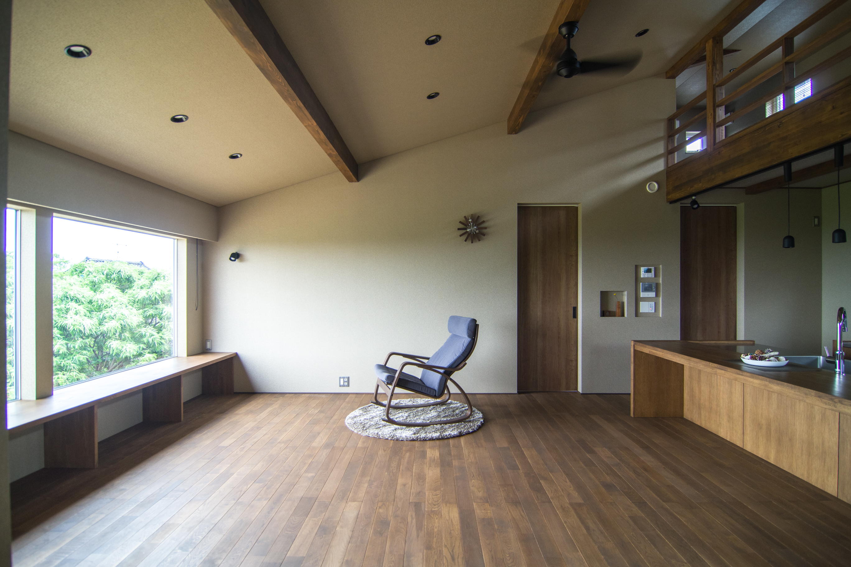 今日は、昨日に続いて2階リビングのお宅をご紹介したいと思います。こちらのお宅も、街中の間口7.6mという限られた敷地に建つ住まいです。広さや明るさをどう確保するかを考える中で、1階と2階の役割を入れ替えることで、この土地に合った心地よい空間が生まれました。 1階に個室、2階に暮らしの中心を置く 街中の狭小地では、1階にリビングを計画すると、どうしても広さが取りにくくなったり、隣家の影響で明るさの面でも不利になったりすることがあります。 そこでこちらのお宅では、思い切って2階にリビングと浴室を配置し、1階には個室をまとめるプランとしました。 暮らしの中心を上に上げることで、限られた敷地でものびのびと過ごせる住まいになっています。 吹抜と天窓で、1階にもやさしい光を届ける 2階リビングと聞くと、1階が暗くならないか心配される方もいらっしゃいます。 こちらのお宅では、階段の吹抜と天窓をうまく使い、玄関や廊下まで自然光が落ちるように設計しました。 実際に入ると、閉じた感じはあまりなく、街中の住まいでありながら、明るさをしっかり感じられる空間になっています。 光の取り入れ方ひとつで、住まいの印象は大きく変わるものだと改めて感じます。 敷地条件を活かして、広がりのある空間に 2階は1階よりも間口を張り出すことで、ゆとりのあるLDKを確保しました。 さらに片流れ屋根を活かしてロフトも設けているため、視線が上にも抜けて、実際の面積以上に広がりを感じます。 こうした空間の作り方は、平屋でも応用できる考え方ですが、街中の狭小地では特に効果が大きいように思います。 土地の条件を弱点と見るのではなく、その場所に合った答えを探していくことが、設計の大切な役割だと感じています。 家づくりは、土地に合わせて考えることで、暮らしやすさが大きく変わります。狭小地であっても、工夫次第で明るく広がりのある住まいは十分に実現できます。そんな一例として、ご覧いただけたらうれしいです。 街中の土地や狭小地での家づくりをご検討中の方は、ぜひ公式LINEからお気軽にご相談ください。敷地条件に合わせた考え方も、実例を交えながらご案内いたします。