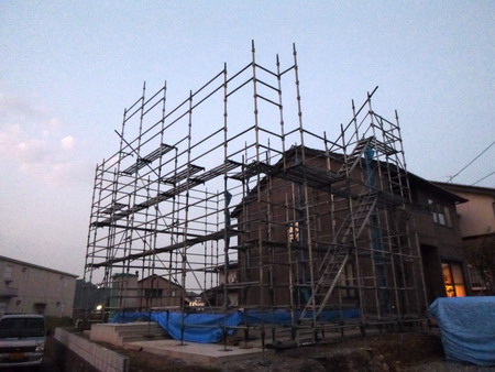 足場も無事完了しております。明日は柱材など現場に搬入して、土曜日の建て方に向けて準備は着々と進んでおります。