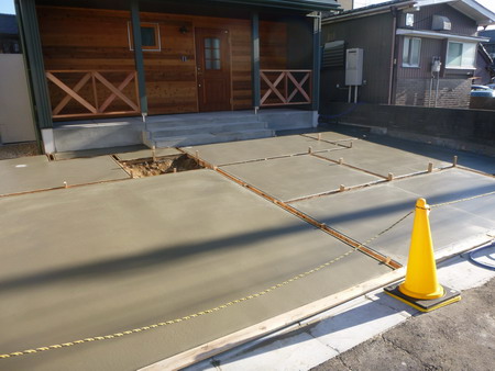 今週は、天気予報がずっと雨マークで、見学会前でも無理せずに遅らせようかと思っていましたが、タイミングよく昨日型枠が出来て、今日施工が出来ました。ほんとラッキーです。