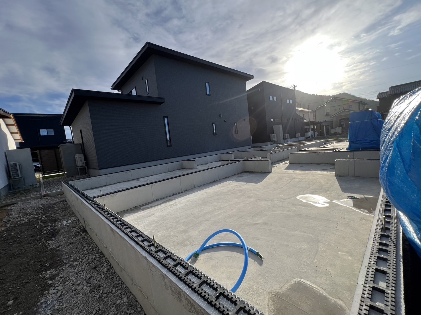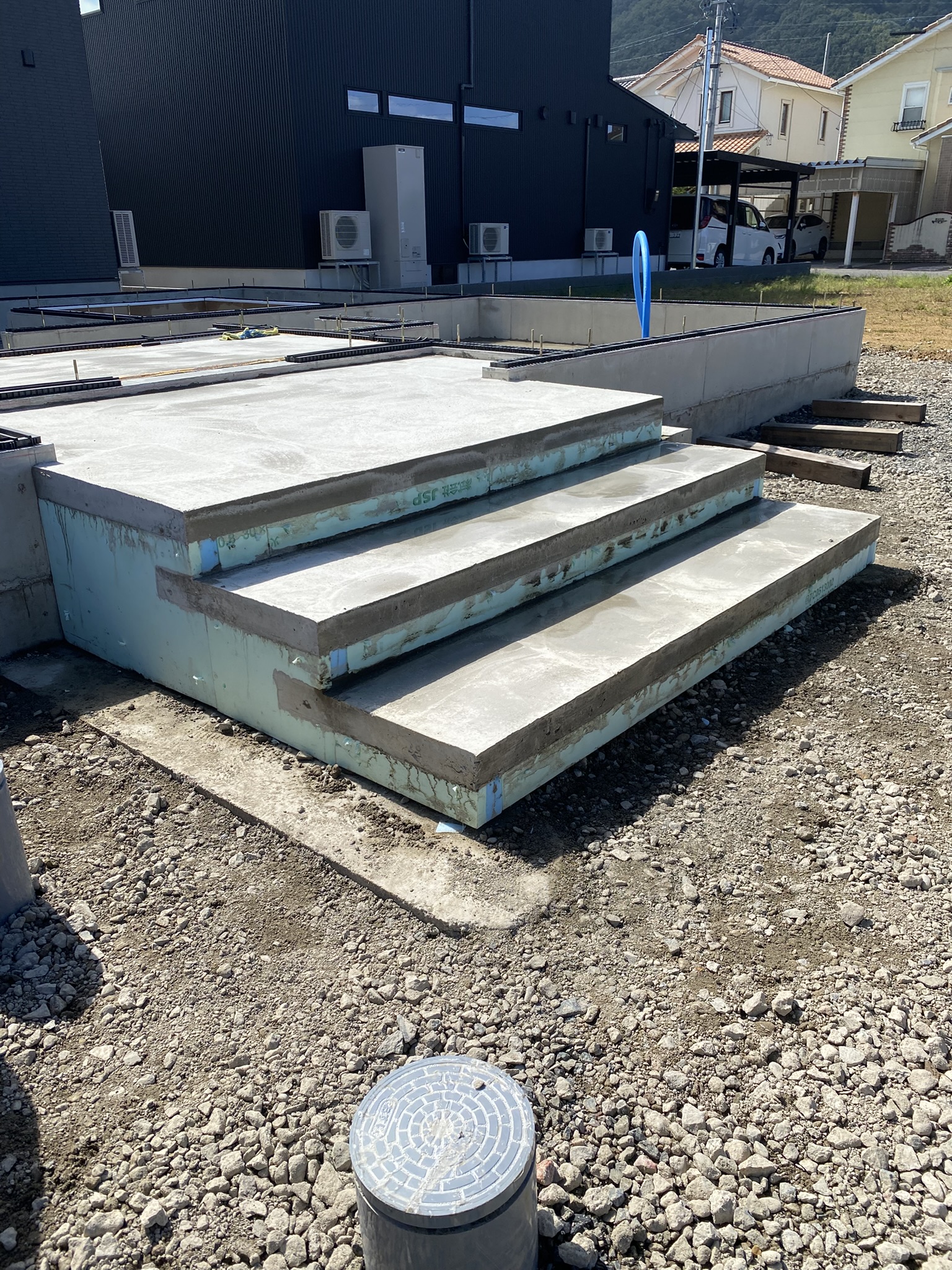 越前市の現場は、型枠の脱型後に土台の搬入荷受けがありました。