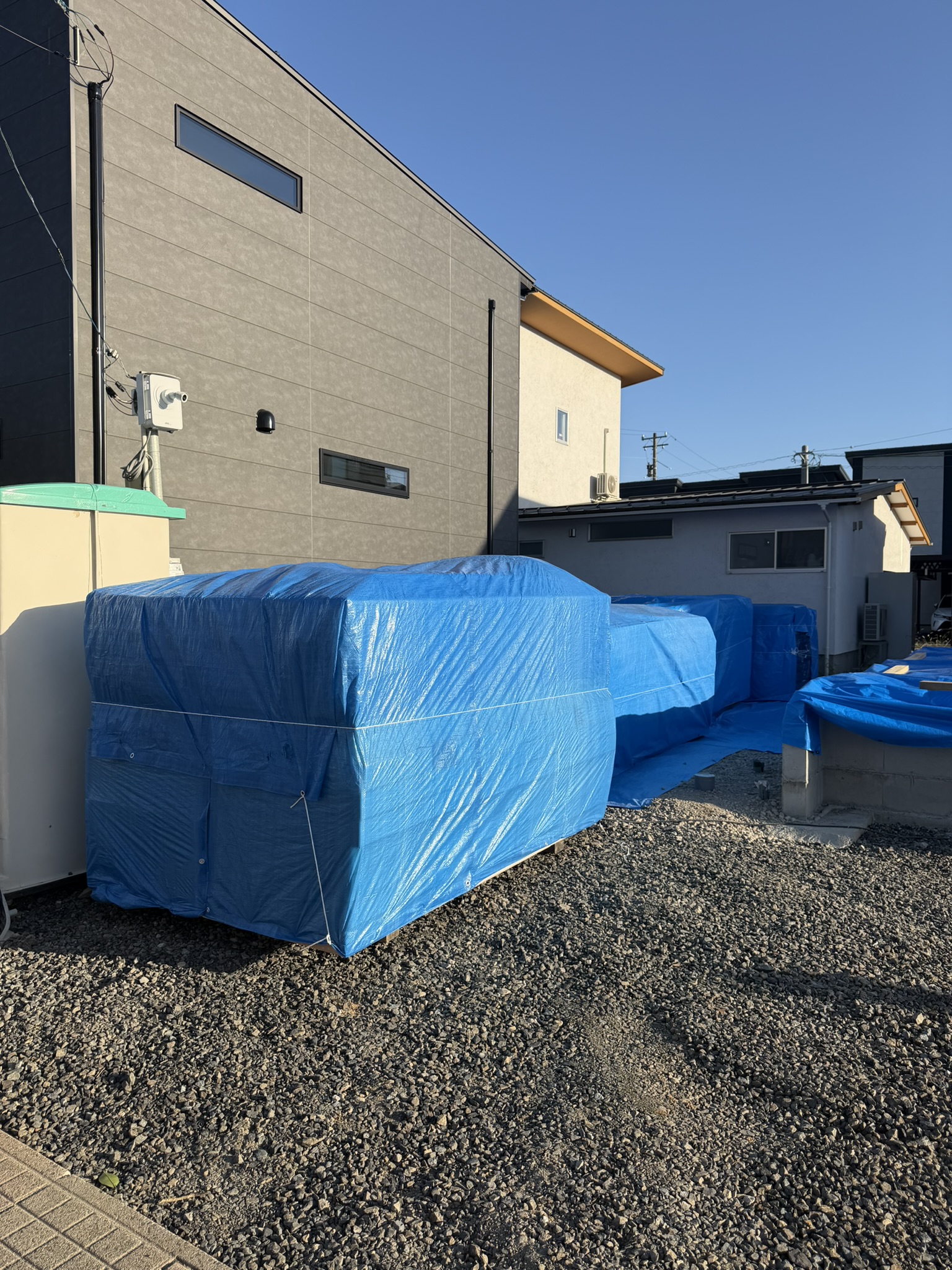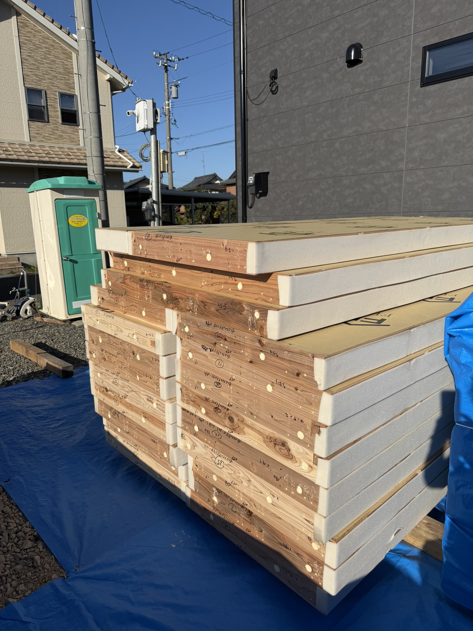 今日は、午前中に大工さん打合せ。その後、三国のお客様宅訪問。午後は、パネルの荷受け作業でした。