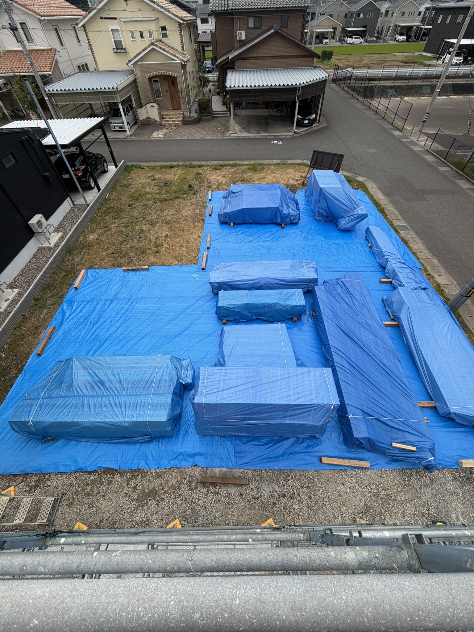 いっぱいモノが置いてあるのは、風対策です。13日にも強い風が吹きそうですので。