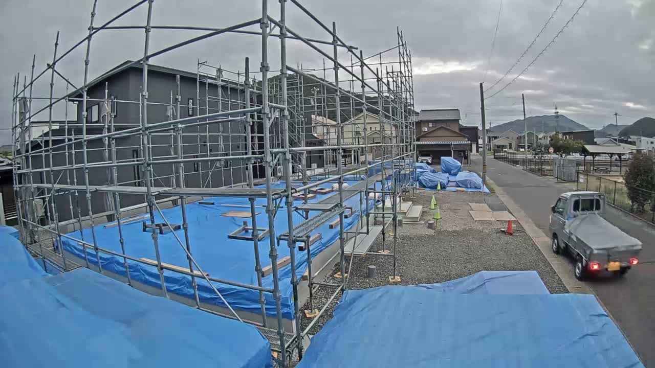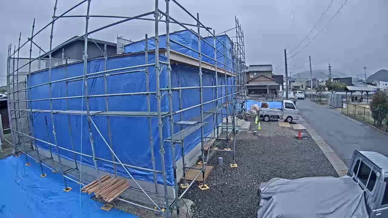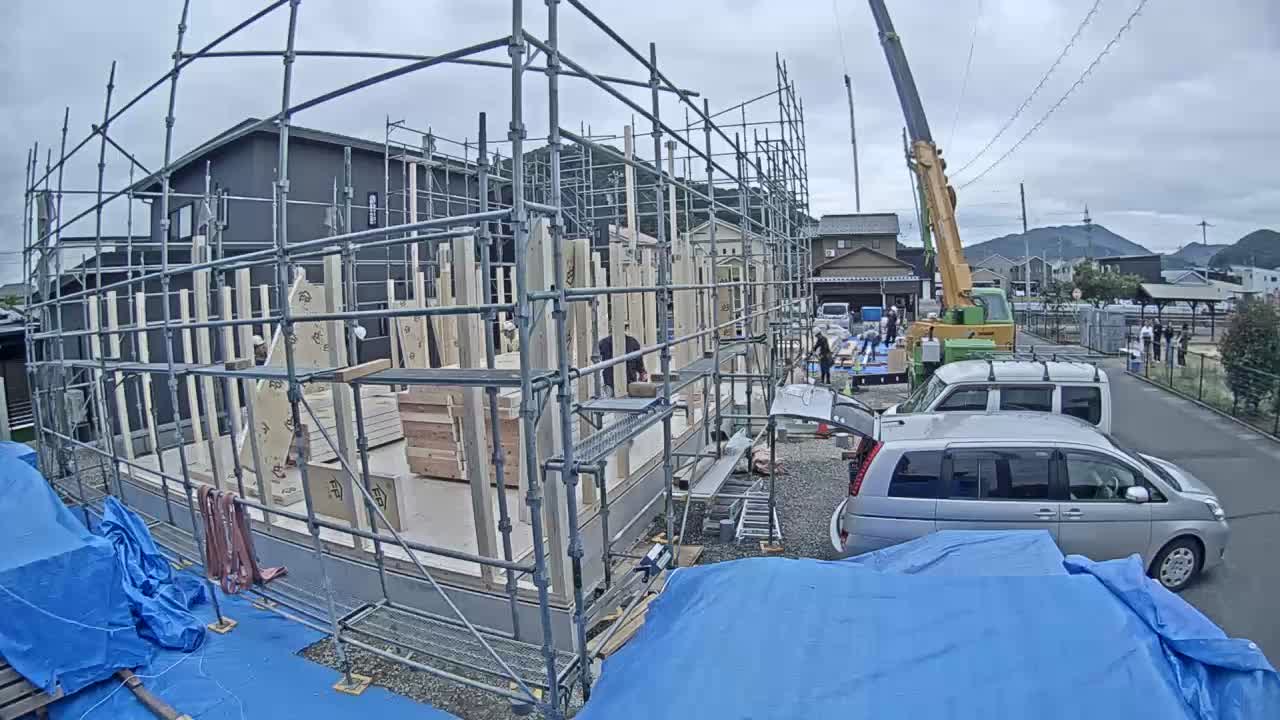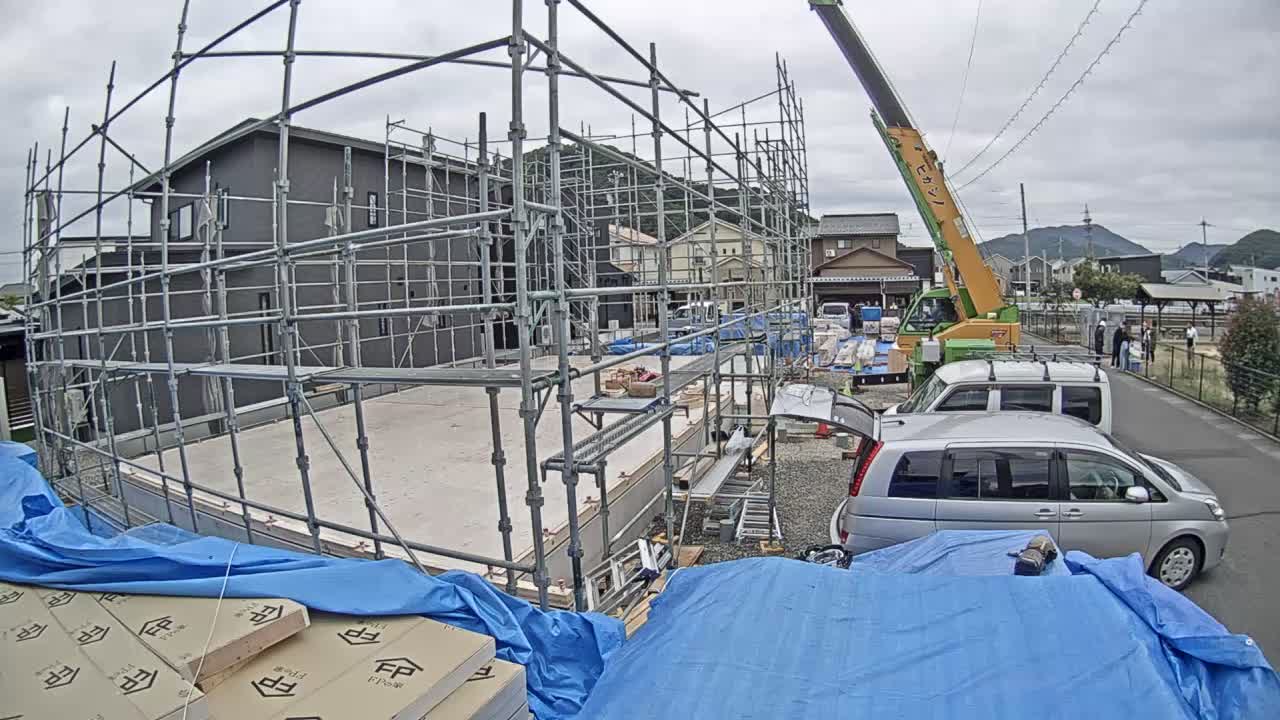大工さん、鳶さん、クレーンは14時半頃に終了して解散。