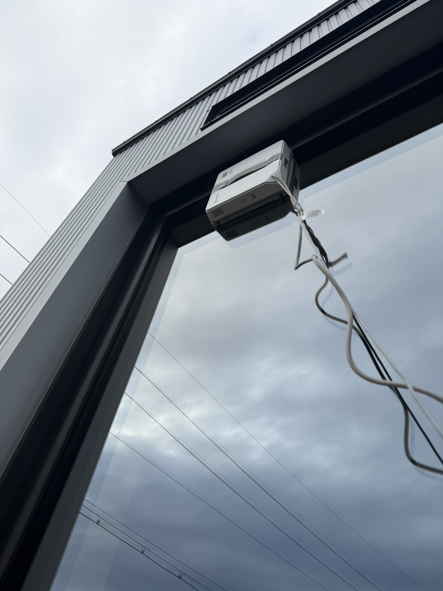 午後からは、先日購入した窓ふきロボットに活躍してもらい、まずは“高いところ”から順番に清掃しました。手が届きにくい窓ほど、無理をしてしまいがちですが、ロボットならガラス面の下側にセットできれば、上までしっかり走ってくれます。これは助かりますね。